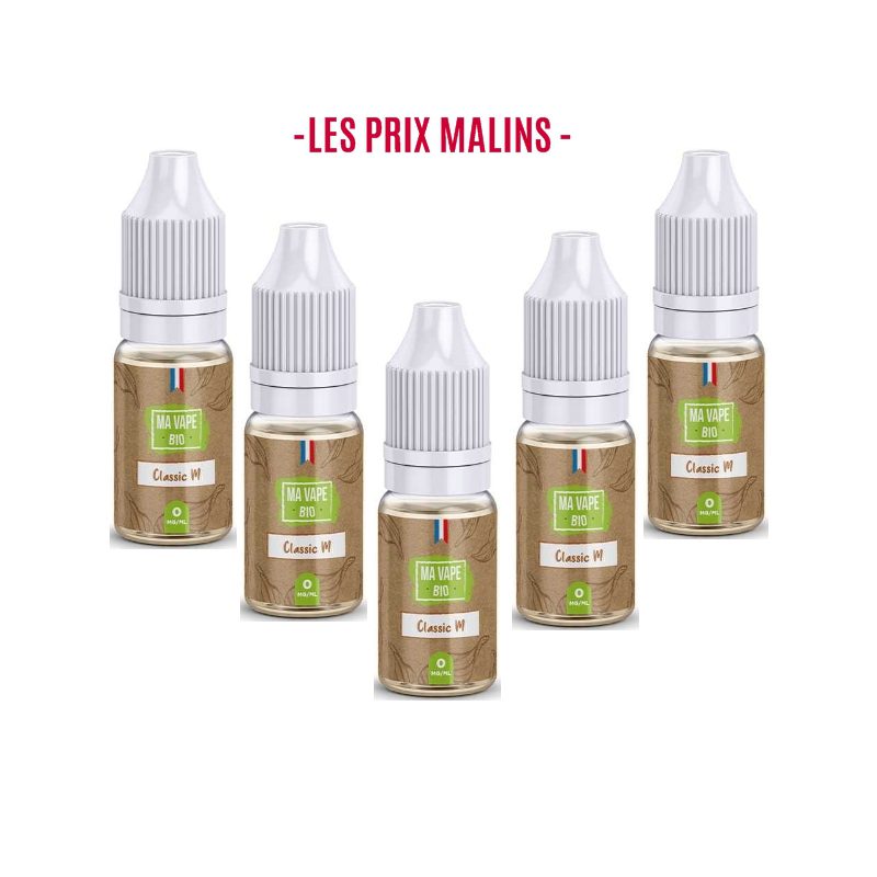 Fabriqué en France, le e-liquide CLASSIC M de la marque MA VAPE BIO est disponible en boite de 5 flacons de 10 ml et en plusieurs dosages de nicotine : 0, 3, 6, 12 ou 16 mg/ml. Parfait pour adapter votre vape à votre profil, que vous soyez en début ou en fin de transition.