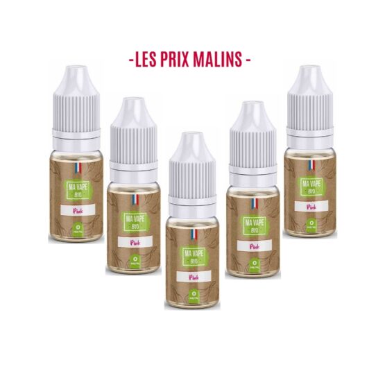 Fabriqué en France, le e-liquide PINK de la marque MA VAPE BIO est disponible en boite de 5 flacons de 10 ml et en plusieurs dosages de nicotine : 0, 3, 6, 12 ou 16 mg/ml. Parfait pour adapter votre vape à votre profil, que vous soyez en début ou en fin de transition.